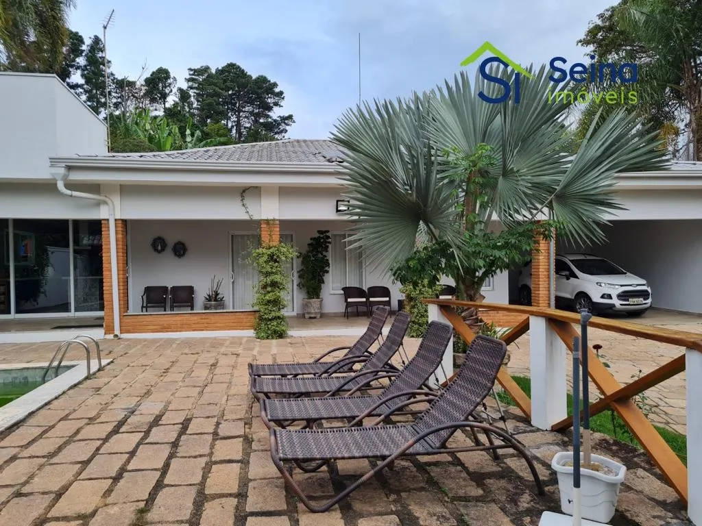 Chácara de alto padrão no Parque Valinhos com 342m² de área construída e 2300m² de terreno, tendo casa principal com 3 dormitórios sendo 1 suíte master com closet e hidromassagem, 5 banheiros, armários planejados em todos os ambientes e ar condicionado.