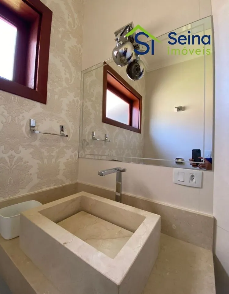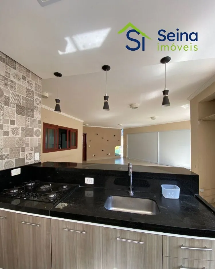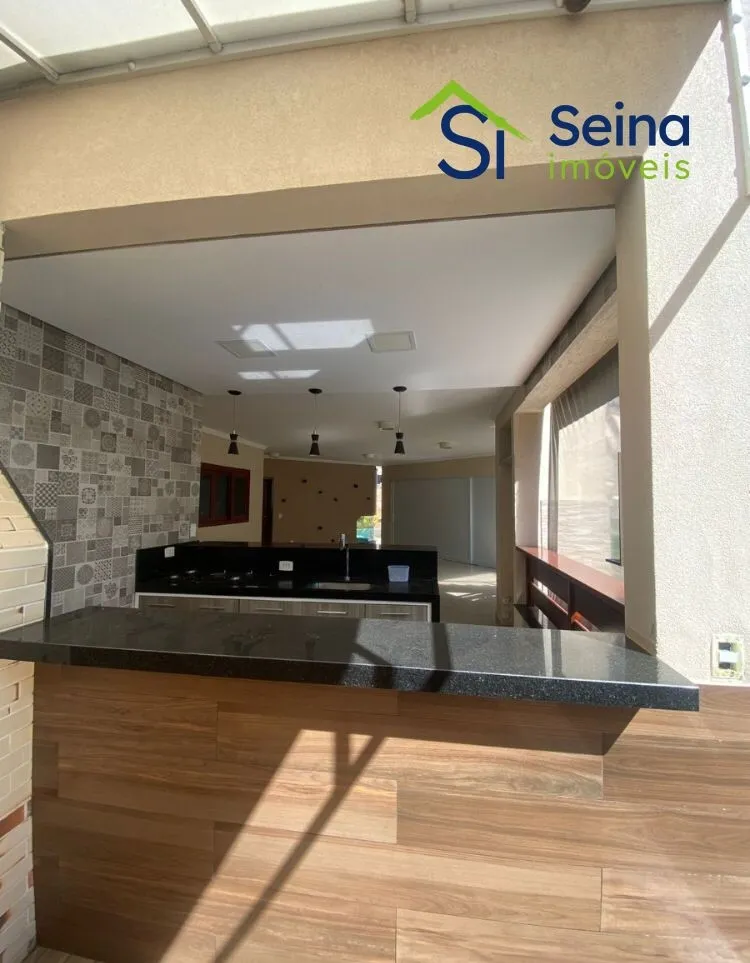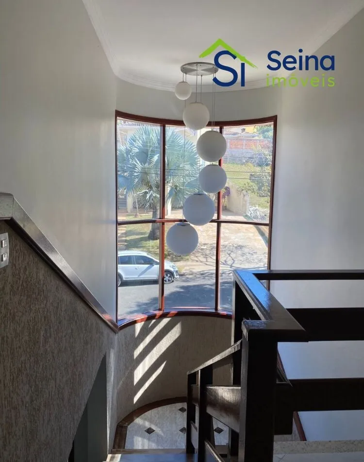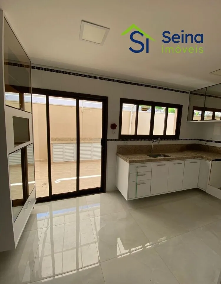 Casa tipo sobrado no Condomínio Residencial Terras do Oriente em Valinhos de 307m² tendo 5 suítes sendo 1 no piso térreo, 7 banheiros, lavabo, 2 cozinhas, área de serviço, armários planejados em todos ambientes, espaço gourmet com churrasqueira e piscina.