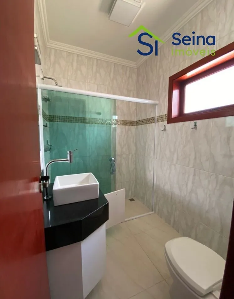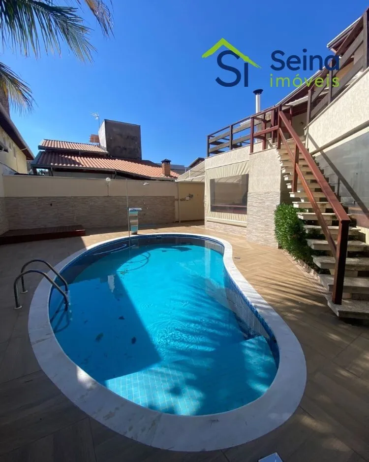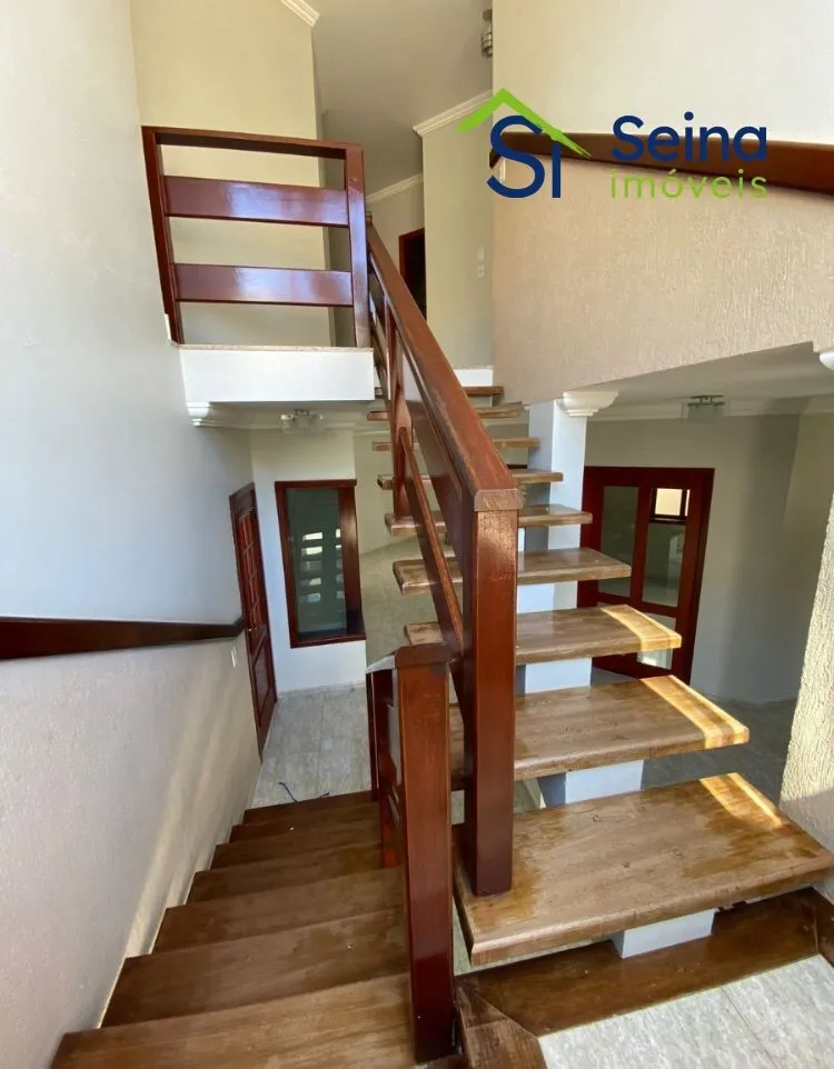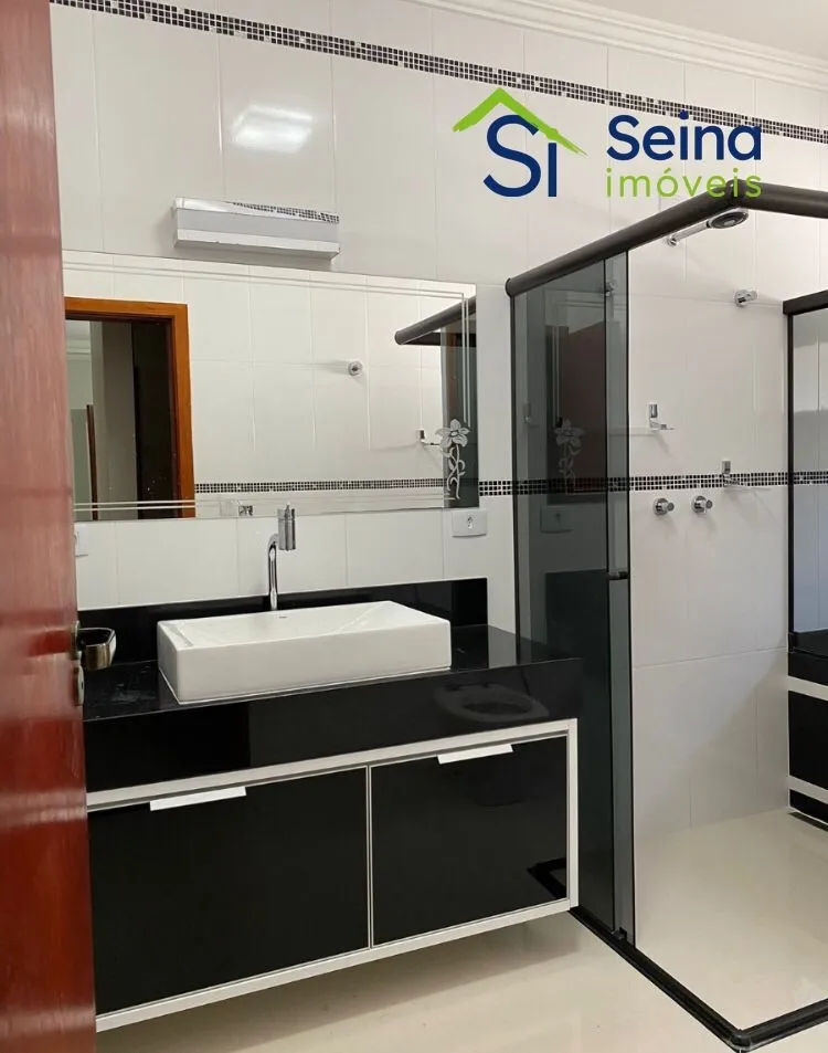 Casa tipo sobrado no Condomínio Residencial Terras do Oriente em Valinhos de 307m² tendo 5 suítes sendo 1 no piso térreo, 7 banheiros, lavabo, 2 cozinhas, área de serviço, armários planejados em todos ambientes, espaço gourmet com churrasqueira e piscina.