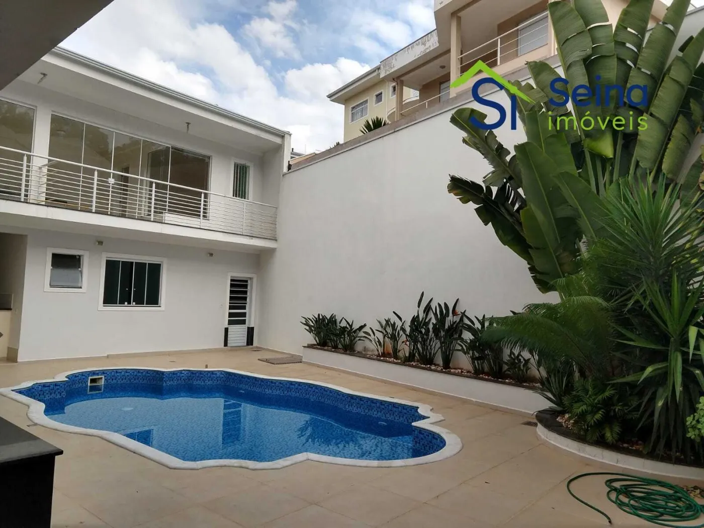 Casa de alto padrão tipo sobrado no Bolsão de Segurança Terra Nova em Valinhos de 600m² com 7 dormitórios sendo 6 suítes, 9 banheiros, escritório, salas 3 ambientes, varanda, armários planejados, ar condicionado, área gourmet com piscina.