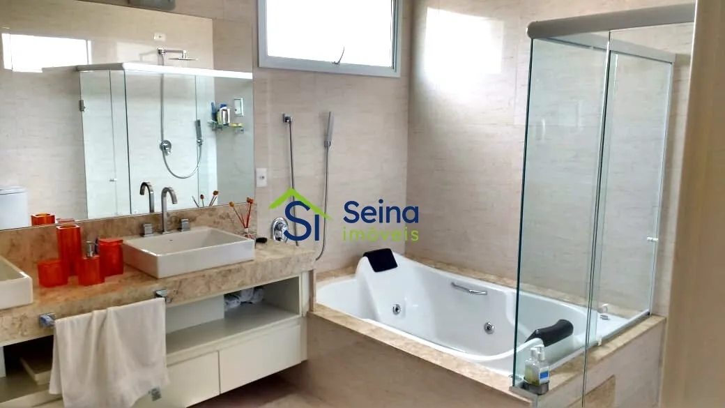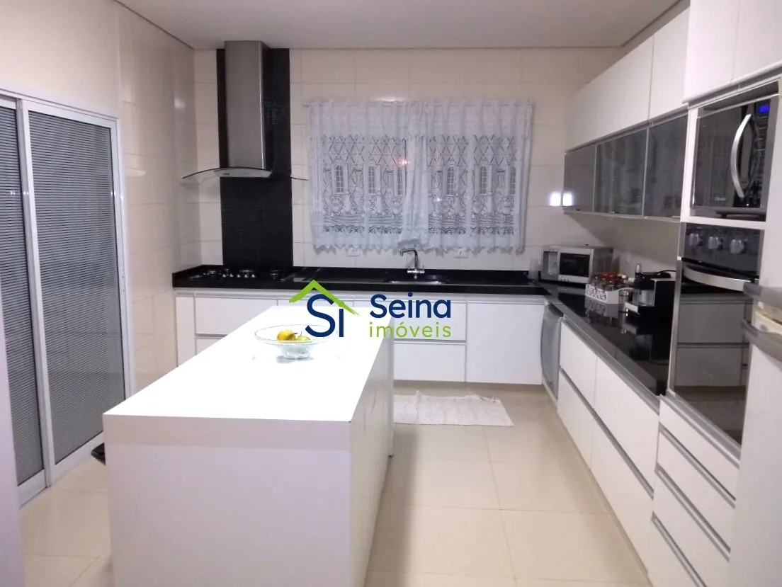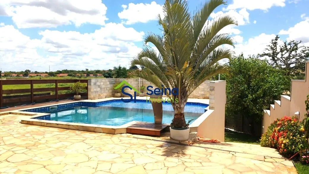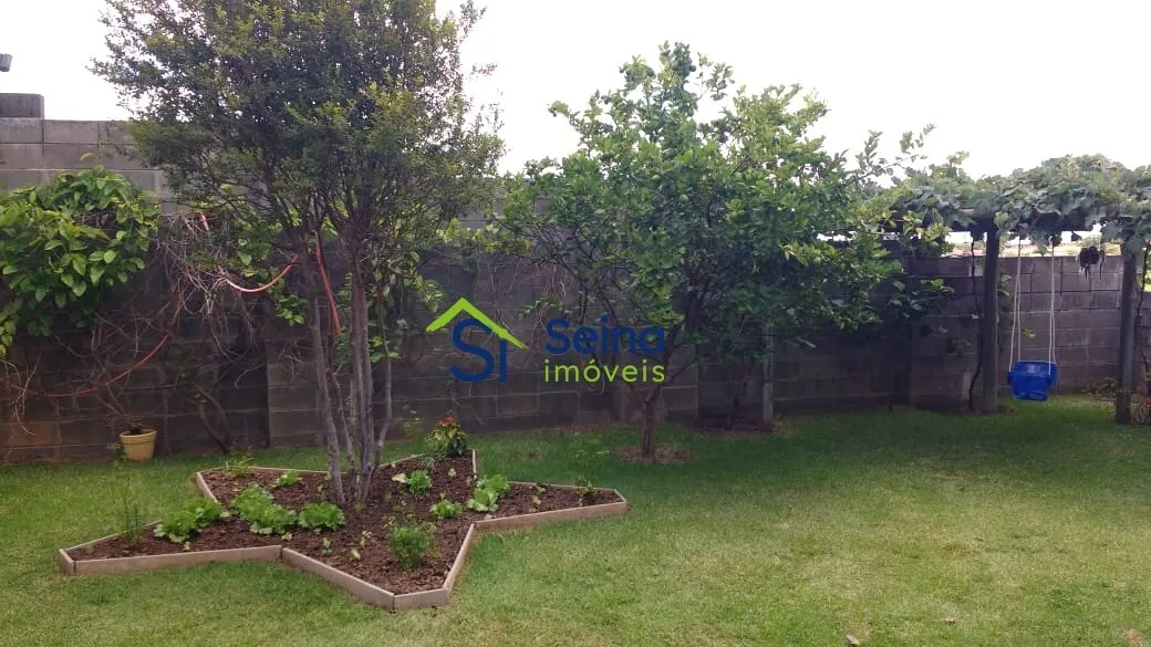 Casa com 03 suítes, sendo uma máster com banheira de hidromassagem, todos com armários planejados, 05 banheiros, sala de estar, sala de jantar, cozinha planejada, área gourmet, piscina, pomar.
