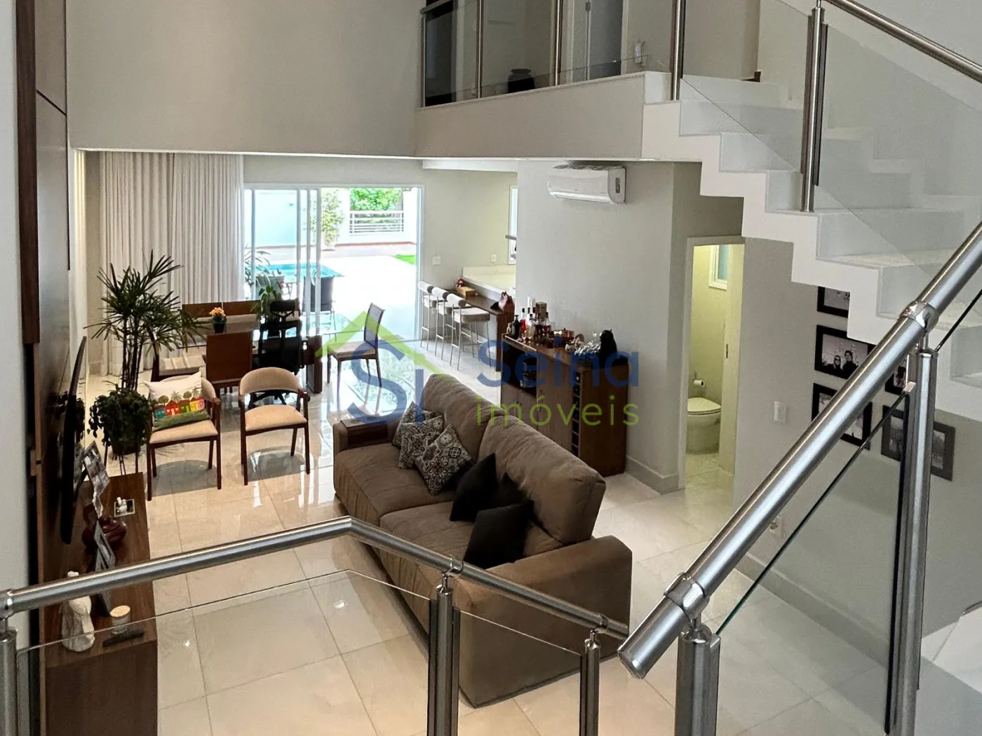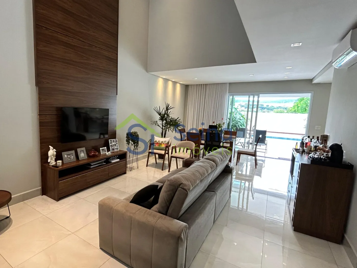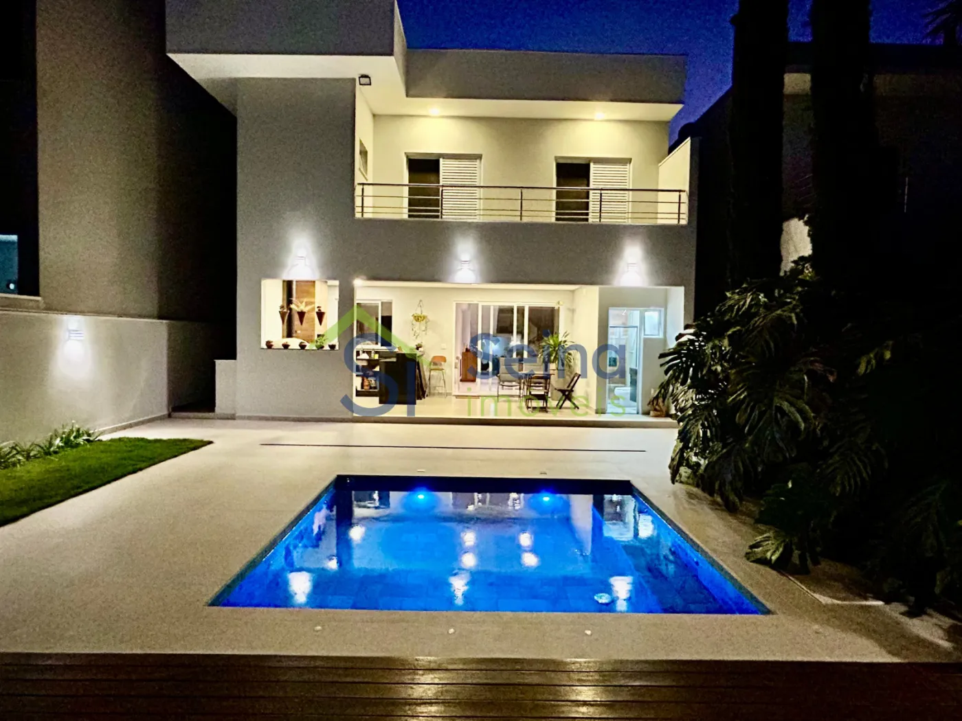 Casa no Condomínio Porto do Sol, com 300m² de terreno e 228m² de área construída, 03 quartos no segundo pavimento, sendo 1 suíte, todos com porcelanato amadeirado, garagem coberta para 02 carros grandes e 02 vagas descobertas. Amplo quintal com piscina, deck e paisagismo, com vista permanente para área verde, área gourmet equipada com forno iglu, churrasqueira, pia, balcão e banheiro externo, integração total entre sala de estar, jantar e cozinha.