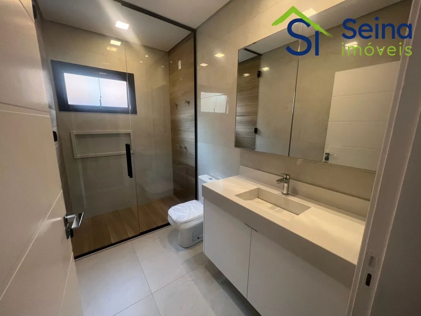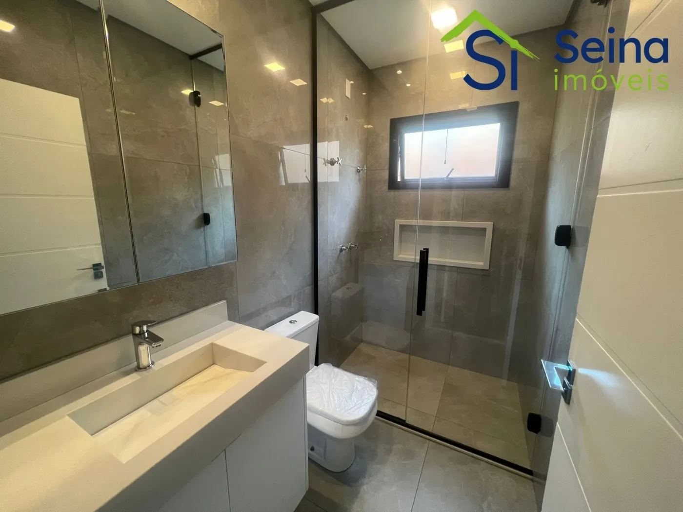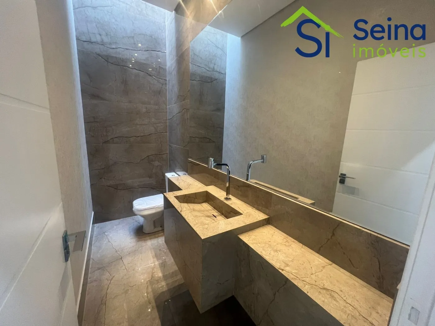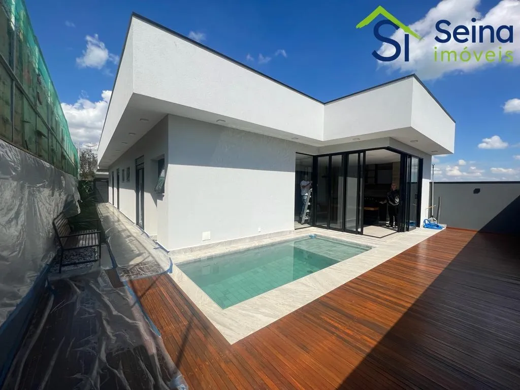 Casa térrea moderna no Swiss Park de 221m², localizada no Residencial Baden no Swiss Park, 3 suítes, 5 banheiros, lavabo com detalhe de iluminação natural de clarabóia e pia esculpida, escritório, sala com pé direito alto de 4,90m integrada com cozinha em conceito aberto com iluminação natural, torneiras aquecidas, espaço gourmet com churrasqueira, cooktop, coifa e mesa em madeira maciça e pedra, armários planejados de alta qualidade em todos os ambientes, todos os comodos climatizados com ar condicionados Samsung Inverter, eletrodomésticos Linha Gourmet Tramontina, piso laminado nas suítes, piso em porcelanato Portobello nos demais ambientes, projeto de iluminação no imóvel, piscina com hidromassagem aquecida, estrutura pronta para instalação de placas fotovoltaicas, aquecimento solar, telhas sanduíche térmicas pintadas em branco, calçamento em pedras portuguesas na fachada da casa.