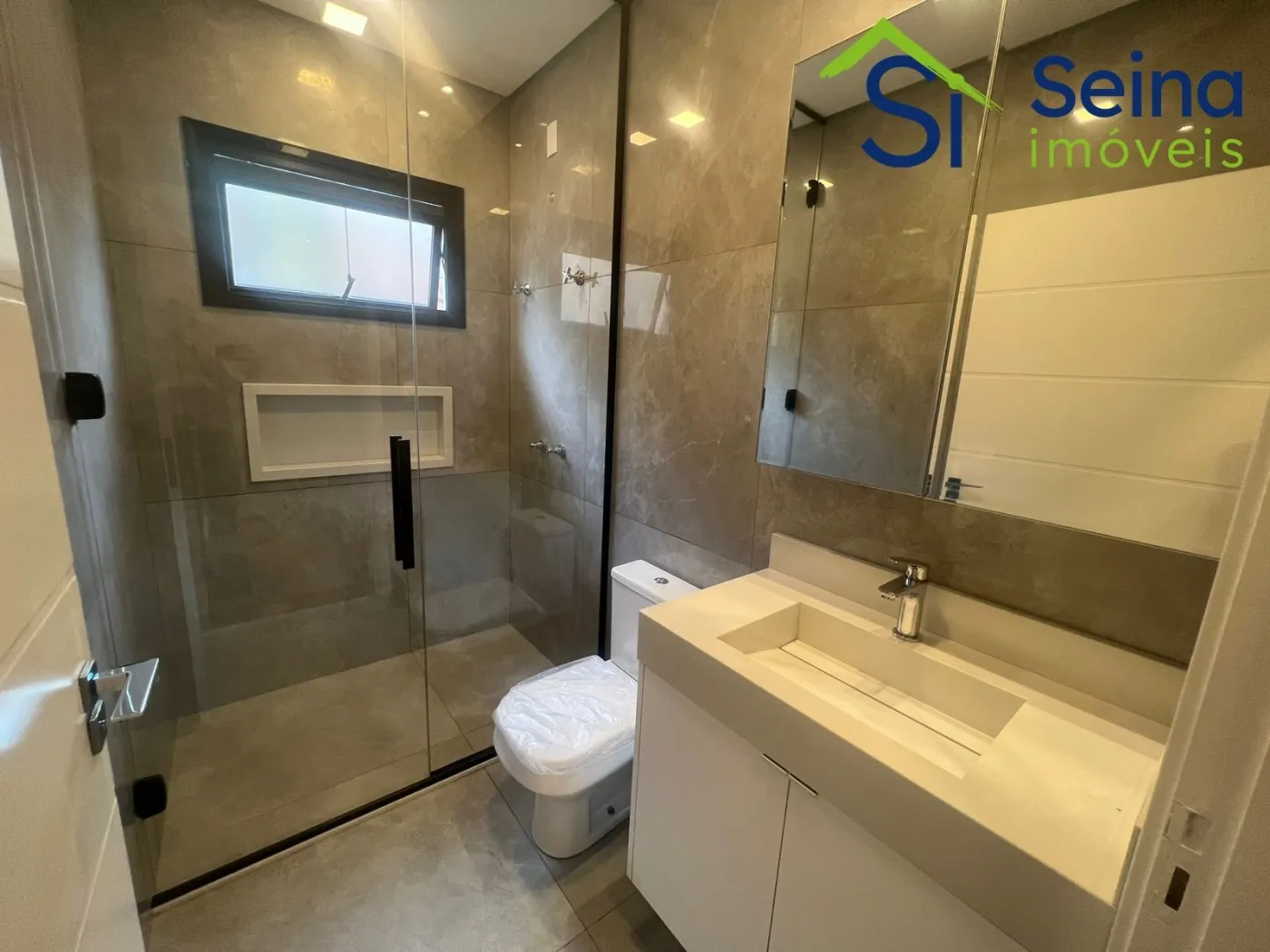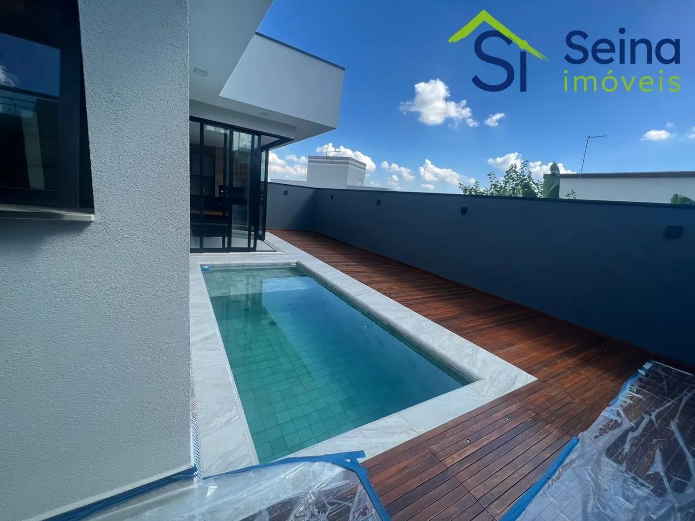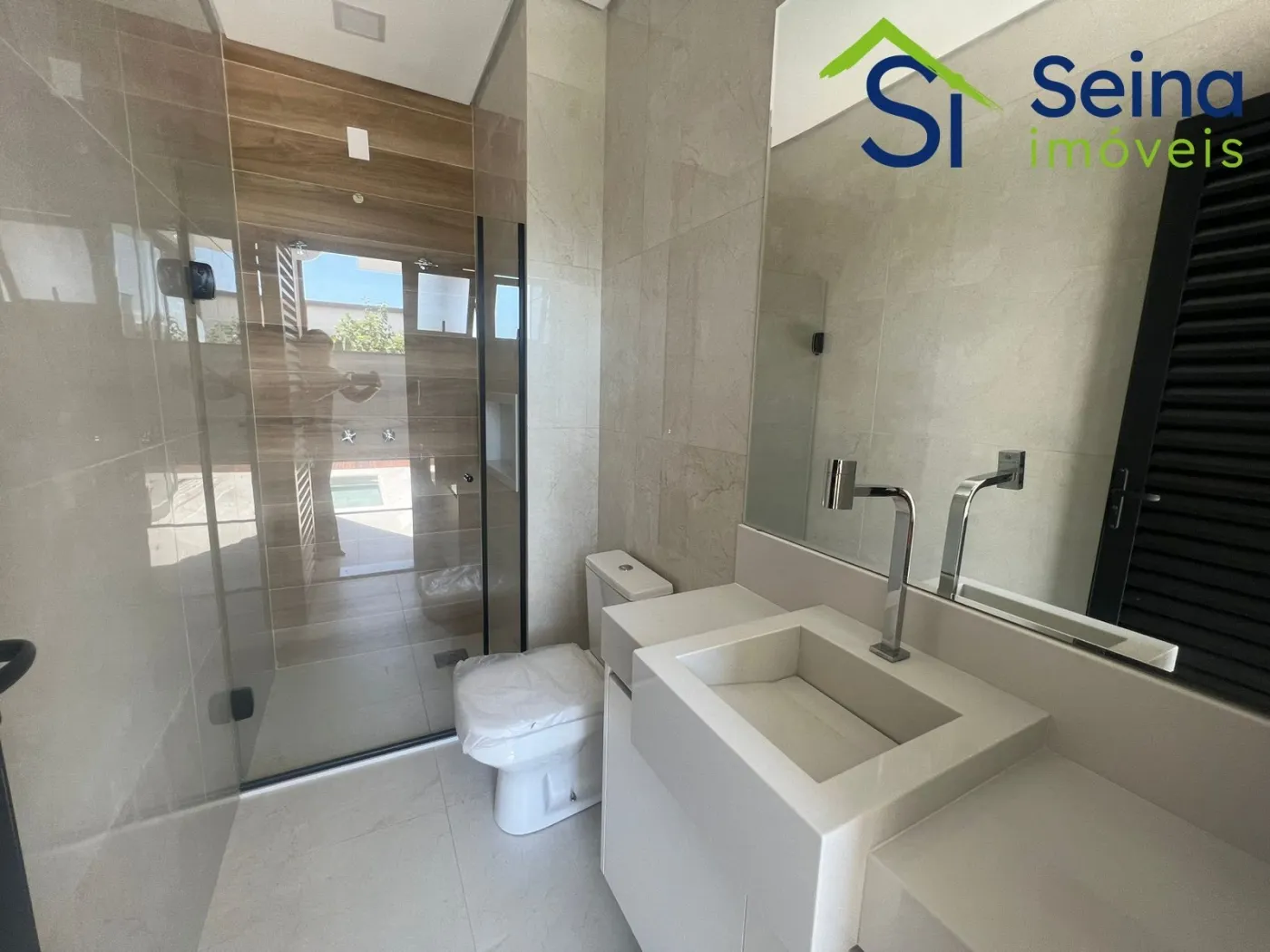 Casa térrea moderna no Swiss Park de 221m², localizada no Residencial Baden no Swiss Park, 3 suítes, 5 banheiros, lavabo com detalhe de iluminação natural de clarabóia e pia esculpida, escritório, sala com pé direito alto de 4,90m integrada com cozinha em conceito aberto com iluminação natural, torneiras aquecidas, espaço gourmet com churrasqueira, cooktop, coifa e mesa em madeira maciça e pedra, armários planejados de alta qualidade em todos os ambientes, todos os comodos climatizados com ar condicionados Samsung Inverter, eletrodomésticos Linha Gourmet Tramontina, piso laminado nas suítes, piso em porcelanato Portobello nos demais ambientes, projeto de iluminação no imóvel, piscina com hidromassagem aquecida, estrutura pronta para instalação de placas fotovoltaicas, aquecimento solar, telhas sanduíche térmicas pintadas em branco, calçamento em pedras portuguesas na fachada da casa.