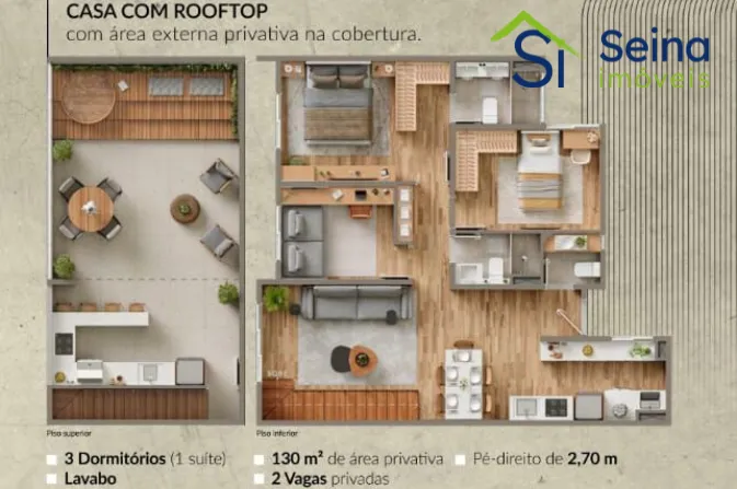 – 20 Casas rooftop com 130m² (incluso 29m² de lazer descoberto),