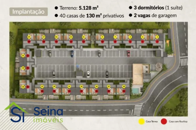 – 20 Casas térreas com 130m² (incluso 40m² de quintal)