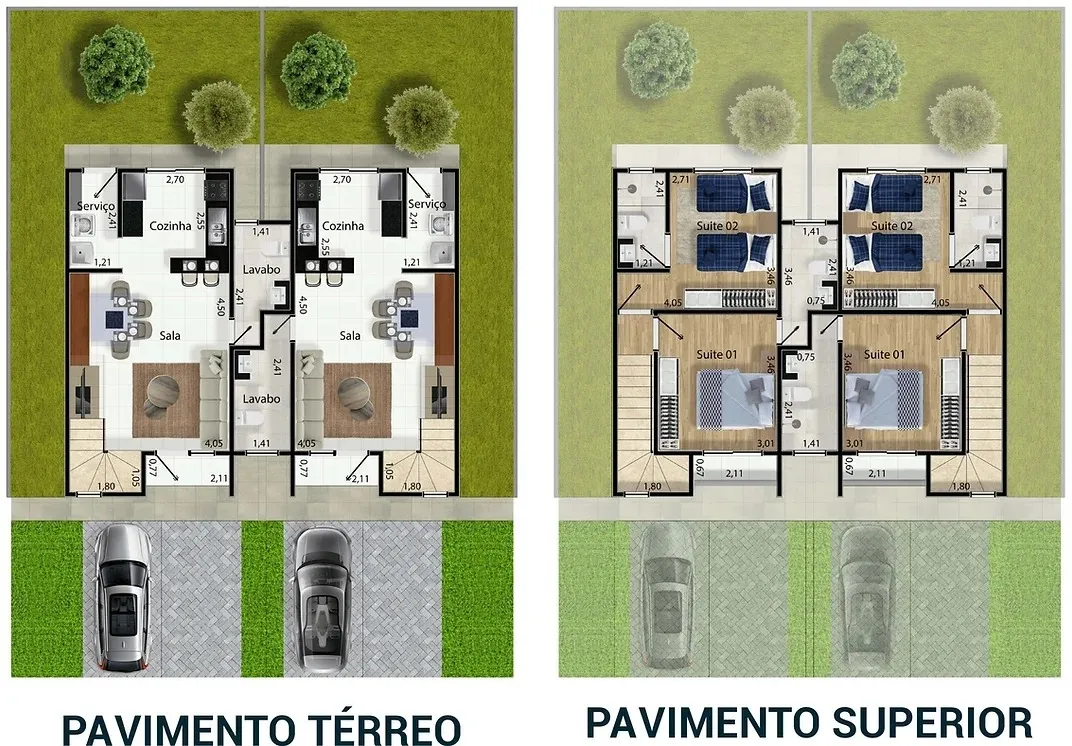 - - Plantas com 2 suítes espaçosas
